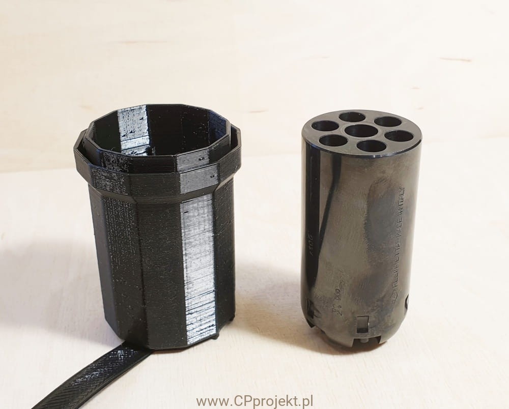 Mocny pojemnik na bęben rewolweru, odporny na uderzenia.