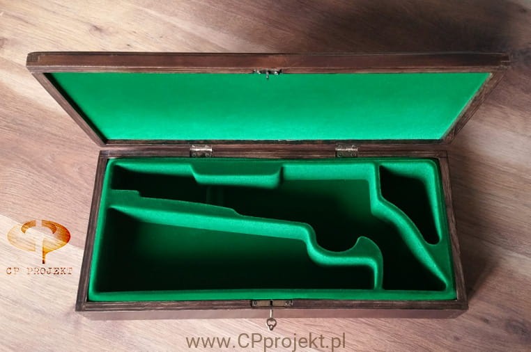 Drewniana szkatułka / skrzynka na rewolwer cp i na akcesoria.