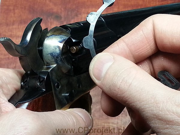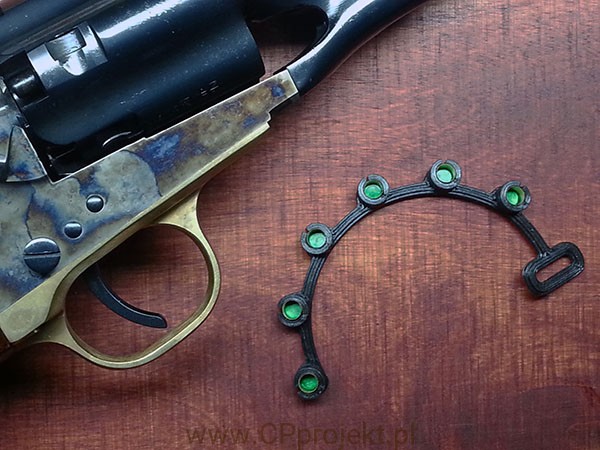 Poręczny, lekki i wytrzymały. Mieści 6 kapiszonów. Współpracuje ze wszystkimi rewolwerami i pistoletami.