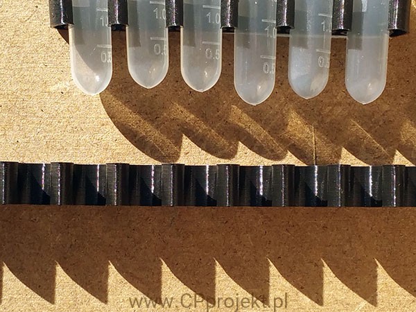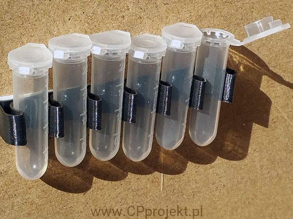 Taśma w rozmiarze dla pojemników o średnicy ~10 mm (pojemności 2 ml).