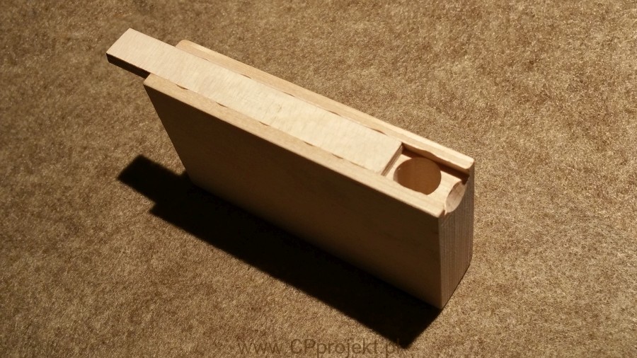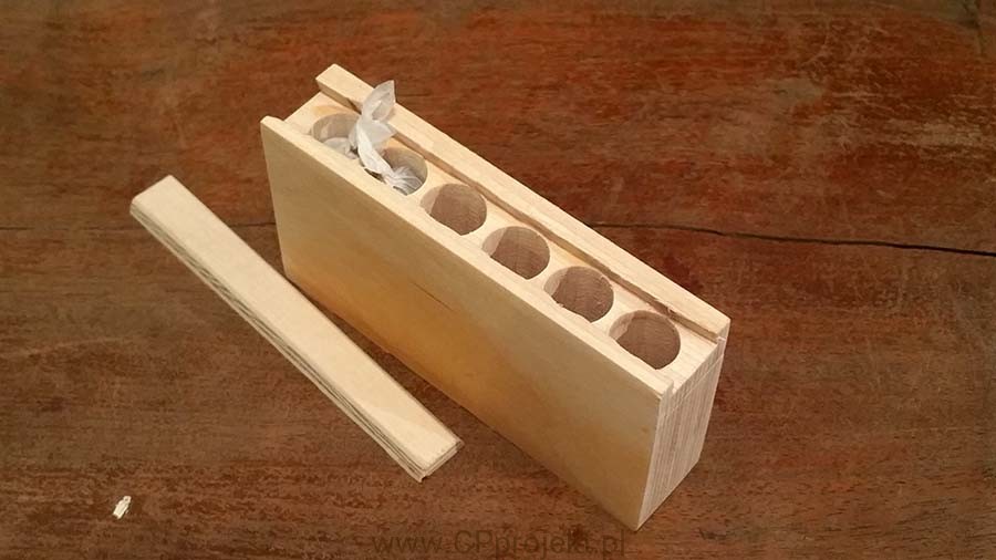 Głębokość komór 42 lub 52 mm. Pojemnik zamykany na drewnianą zasuwkę.