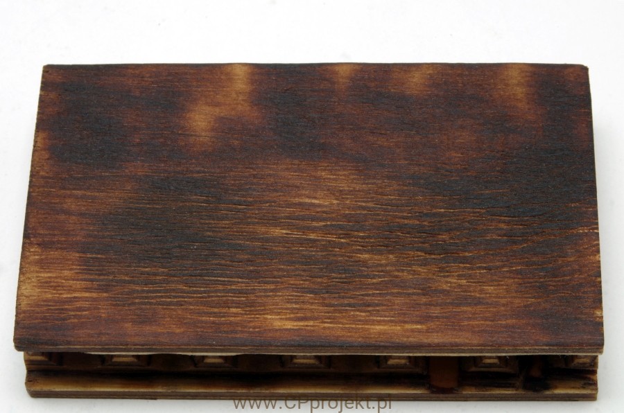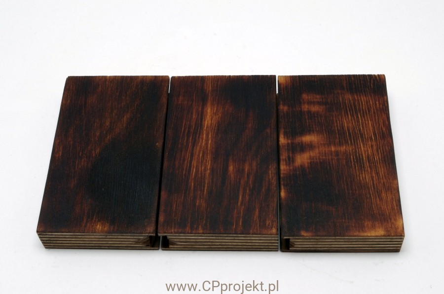 Zestaw trzech drewnianych pojemników na patrony / cartridge. Drewno poddane postarzaniu.